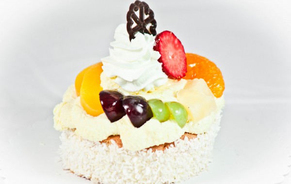 Ochucený tvarohový krém s tiramisu plněný ovocem dle sezony....